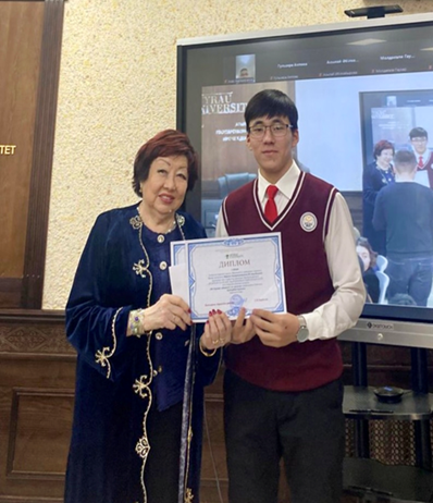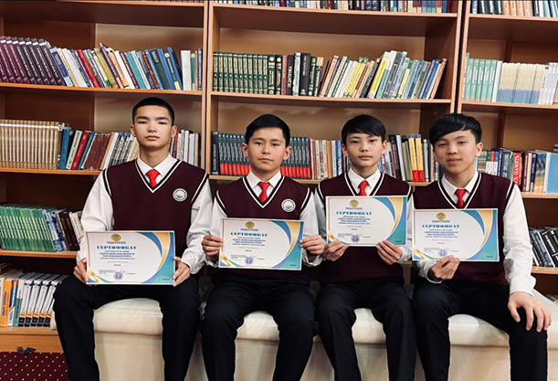 • 11th-grade student Islam Tulegenov won 2nd place in Russian Language.
