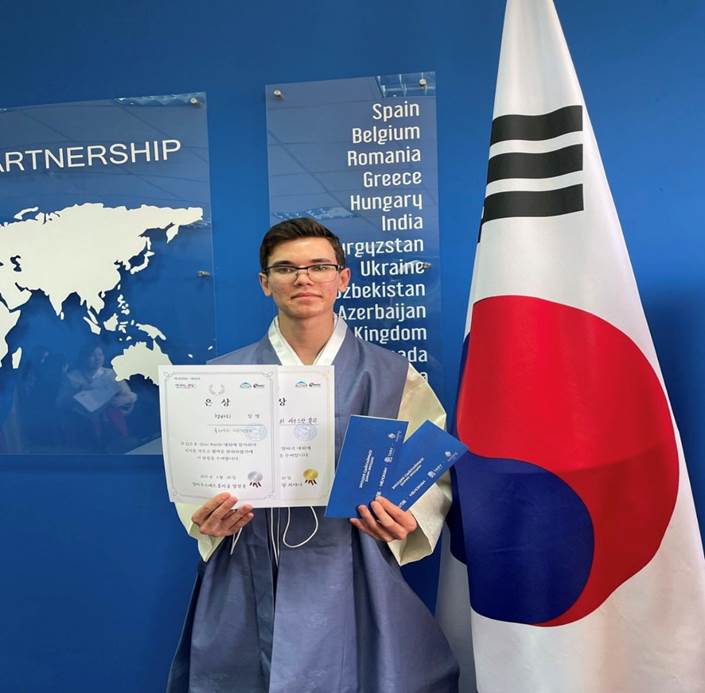 11th-grade student Arystanali Tuleush won 2nd place in the Korean language public speaking contest and quiz on South Korea.