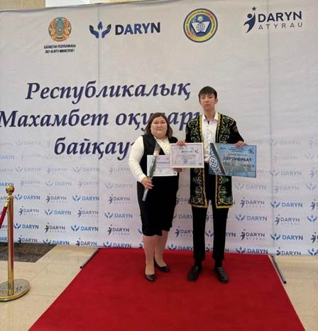 At the Republican competition “Makhambet Oqulary,” organized by the Republican Scientific and Practical Center “Daryn” in the category “Biz netken er, netken er, sergelden men ötkеn,” 11th-grade student of the boarding school for gifted children “Ustaz” of NJSC Atyrau University named after Kh. Dosmukhamedov, Bakdaulet Mazhitov, took part and won 1st place.