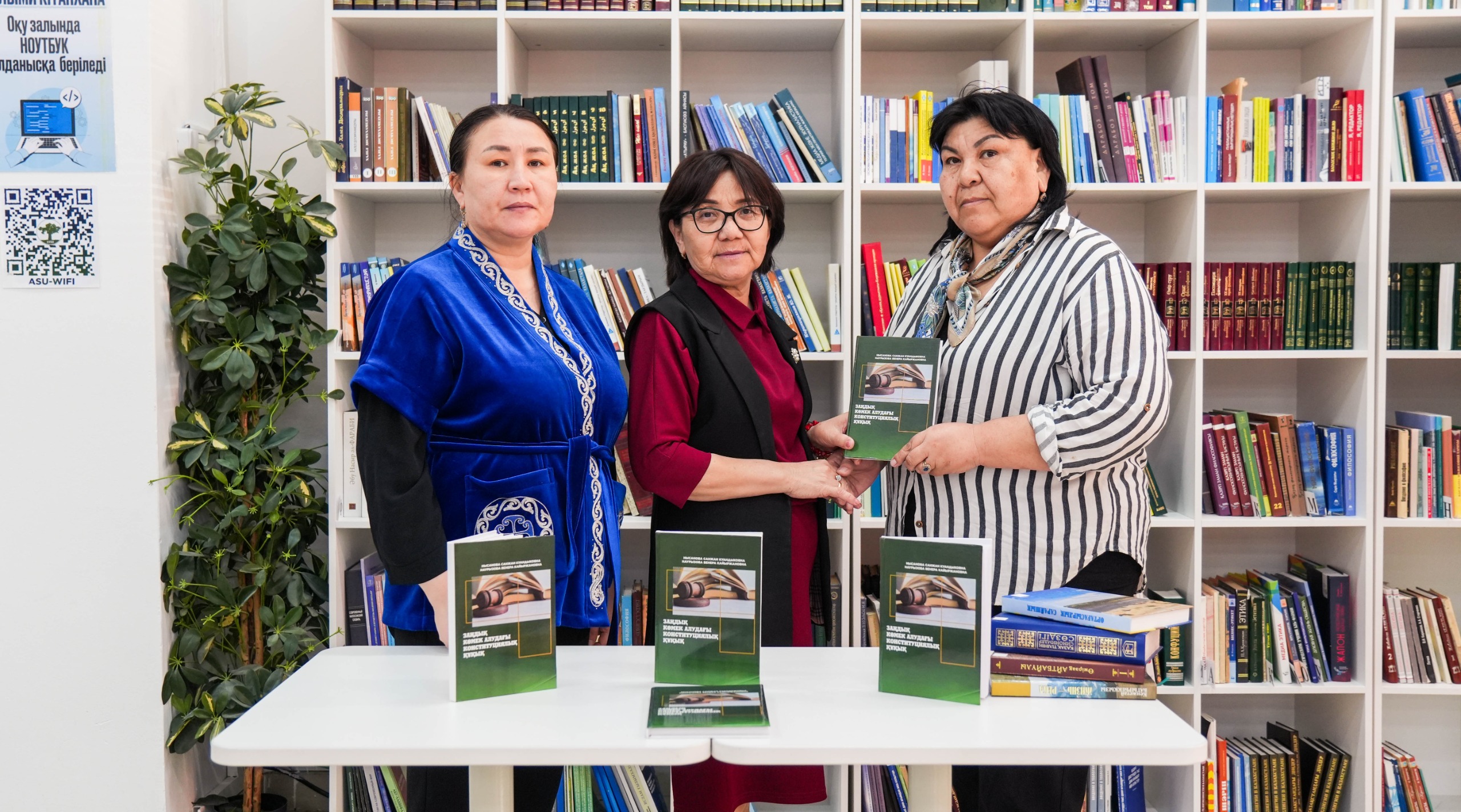 Аталған игі шара аясында ректор аппаратының басшысы, қауымдастырылған профессор, тарих ғылымдарының кандидаты Гүлфайруз Қайырғалиева өзінің жеке кітапханасынан құнды кітаптарды сыйға тартты. Сонымен қатар, Азаматтық құқықтық пәндер кафедрасының сеньор-лекторы, заң магистрі Венера Наурызова мен қауымдастырылған профессор, т.ғ.к. Санжан Нысанова өздерінің “Заңды көмек алудағы конституциялық құқық” атты авторлық еңбектерін университеттің ғылыми кітапхана қорына табыстады.