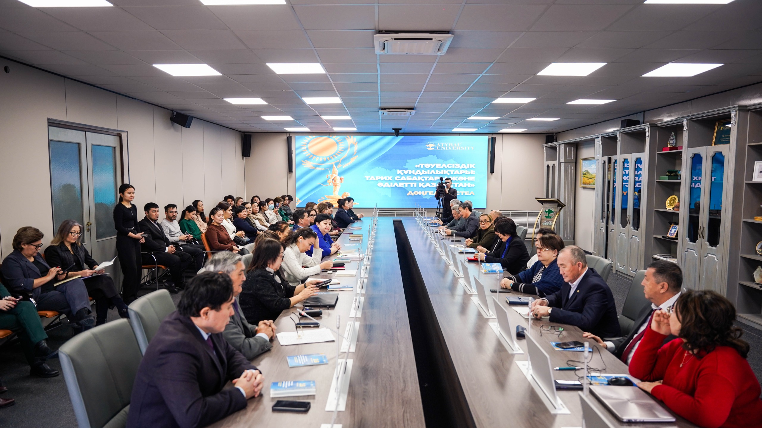 Х. Досмұхамедұлы атындағы Атырау университетінде «Тәуелсіздік құндылықтары: тарих сабақтары және Әділетті Қазақстан» тақырыбында дөңгелек үстел өтті. Іс-шара Тәуелсіздік тарихын терең зерделеуге, тарихи сананы жаңғыртуға және Әділетті Қазақстан құндылықтарын дәріптеуге бағытталды.