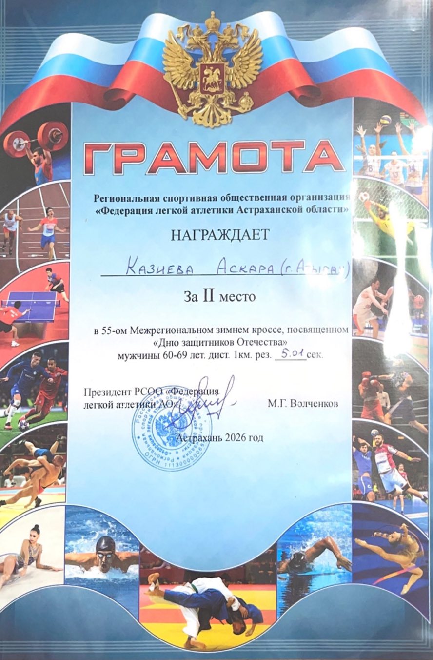 2026 жылдың 23 ақпанында Астрахань қаласында өткен жеңіл атлетикадан 55-ші қысқы өңіраралық жарыс өтті.
