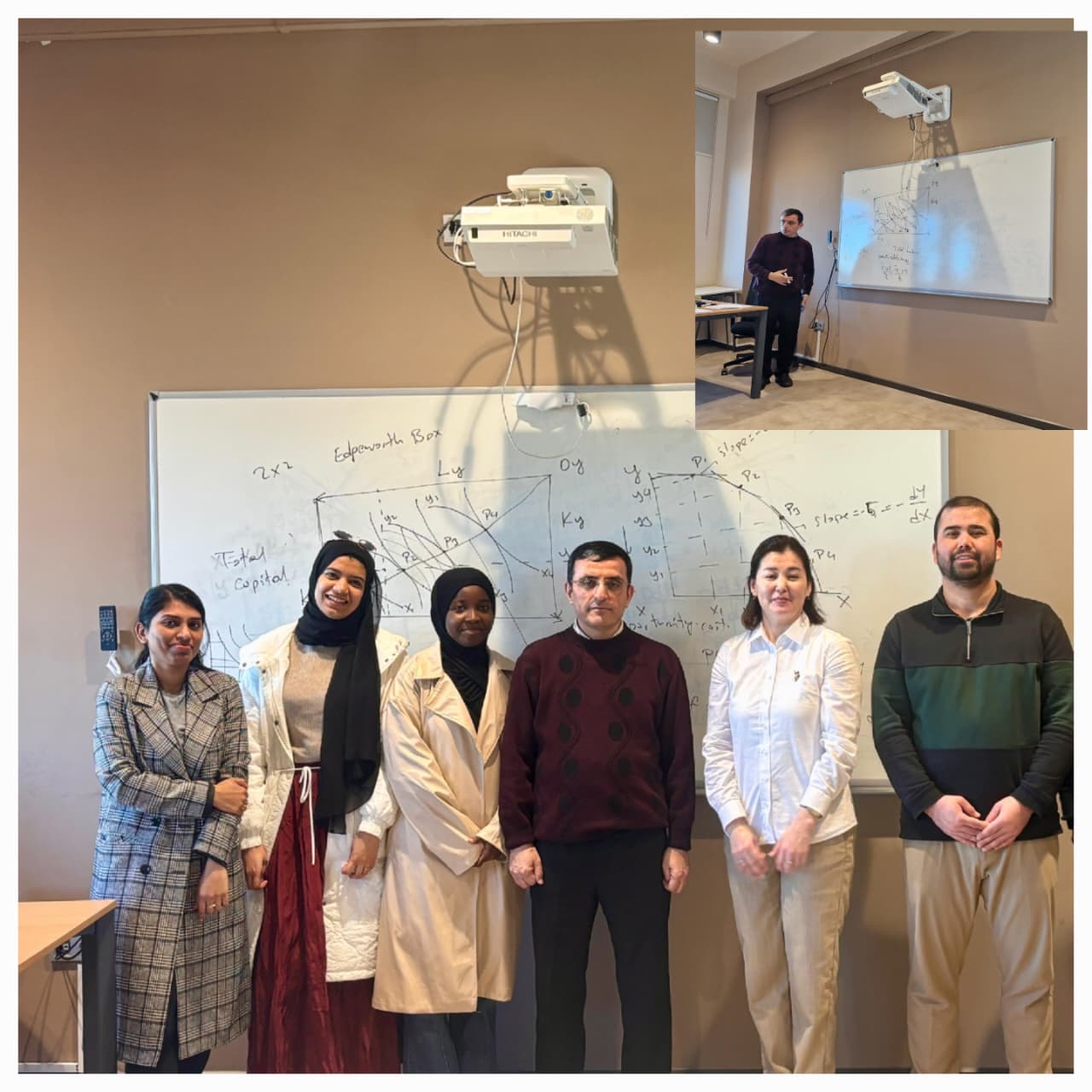 Алдын-ала бекітілген тағылымдама кестесіне сәйкес, 2025-2026 оқу жылының екінші жарты жылдығында ORHUN бағдарламасымен тағылымдамадан өтудегі ғалым Адиетова Эльмира Мизамғалиқызы Economics Department, School of  Business факультетінде, 2-3 курс білім алушы магистранттары мен докторанттарына – Advanced Microeconomics (ECON 603), Microeconomic Analysis (ECON 503), Advanced Econometrics (ECON 604), Statistics-II (STAT 102), Sustainable Development Concept (ECON 604) академиялық пәндері бойынша 2 апталық дәріс және семинар сабақтарын, сонымен қатар, магистратура, докторантура білм алушыларымен кеңес беру бойынша кездесулер өткізді. Экономика саласының докторлары -бизнес мектебі, қауымдастырылған Professor Dr. Asad Ul Islam Khan, Professor Dr. Hasan Vergil, Professor Dr. Muhittun Kaplan-мен зерттеулер жүргізді. Тағылымдама нәтижесінде арнайы сертификат табысталды.
