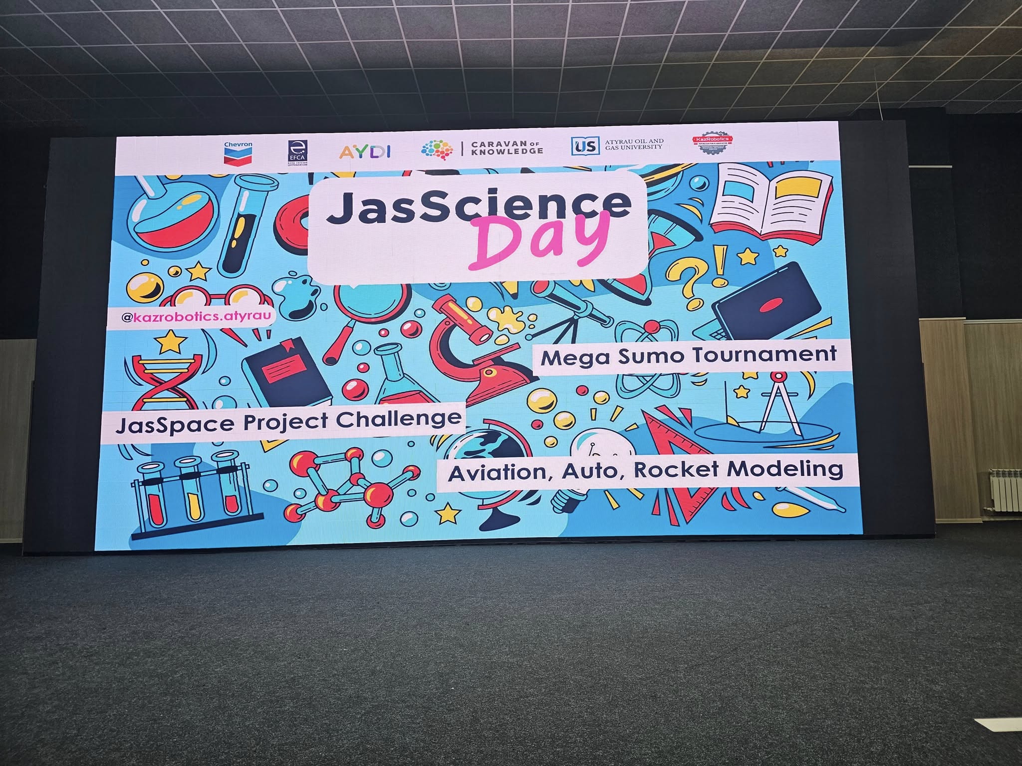 Студенттердің ғылыми бастамалары стартап-жобалар мен конкурстар форматында қолдау алады. JasScience Project Challenge аясында "Caravan of Knowledge" ҚҚ, Еуразиялық Орталық Азия қоры және Chevron компаниясының қатысуымен Студенттер инновациялық экологиялық әзірлемелерді ұсынды. "Экос" үйірмесінің жобалары, соның ішінде шыны қалдықтарын пайдалана отырып, эпоксидті шайырдан жасалған бұйымдар жасау, серобетон, биопластика және темекі қалдықтарын қайта өңдеу жобалары аймақ үшін ғылыми зерттеулер мен практикалық шешімдердің интеграциясын көрсетеді.