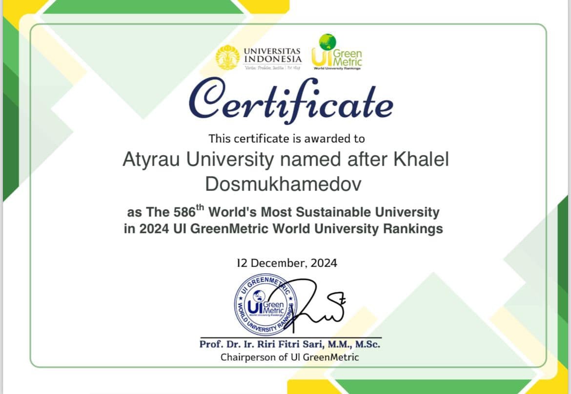 2024-2026 жылдары университет экологиялық мәдениет пен студенттердің кәсіби құзыреттілігін дамытуға бағытталған ауқымды іс-шаралар кешенін іске асырды. "Таза Қазақстан" республикалық акциясы аясында "Ақжайық" мемлекеттік табиғи резерватымен бірлесіп ағаш отырғызу, экологиялық сенбіліктер, қалдықтарды сұрыптау мәдениеті бойынша ашық семинарлар, энергия үнемдеу бойынша тренингтер, "Таза Қазақстан-Таза Болашақ Кепілі"шеберлік сыныптары өткізілді. "Ақжайық" ГПР, Қазгидромет, "Каспиймұнайгаз" ҒЗИ, Атырау облысы бойынша экология департаменті, Орхус орталығы және қоғамдық ұйымдар өкілдерінің қатысуымен Орал өзенінің таяздануы мен ластануы мәселелері бойынша дөңгелек үстелдер ұйымдастырылды.