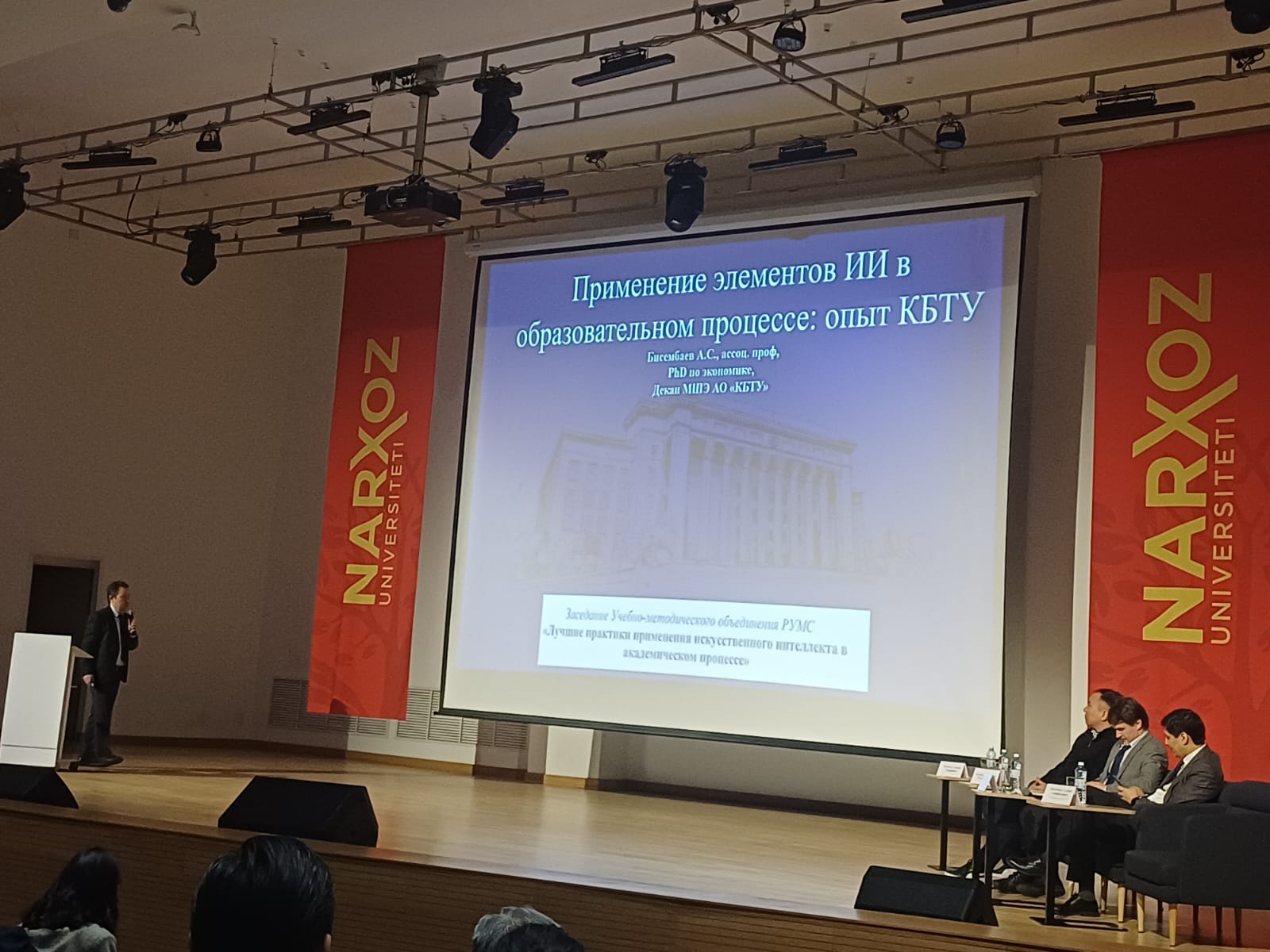 На панельной дискуссии были выслушаны доклады представителей ведущих вузов, посвященные практике и опыту применения ИИ в академическом процессе SDU, КБТУ, Нархоз.